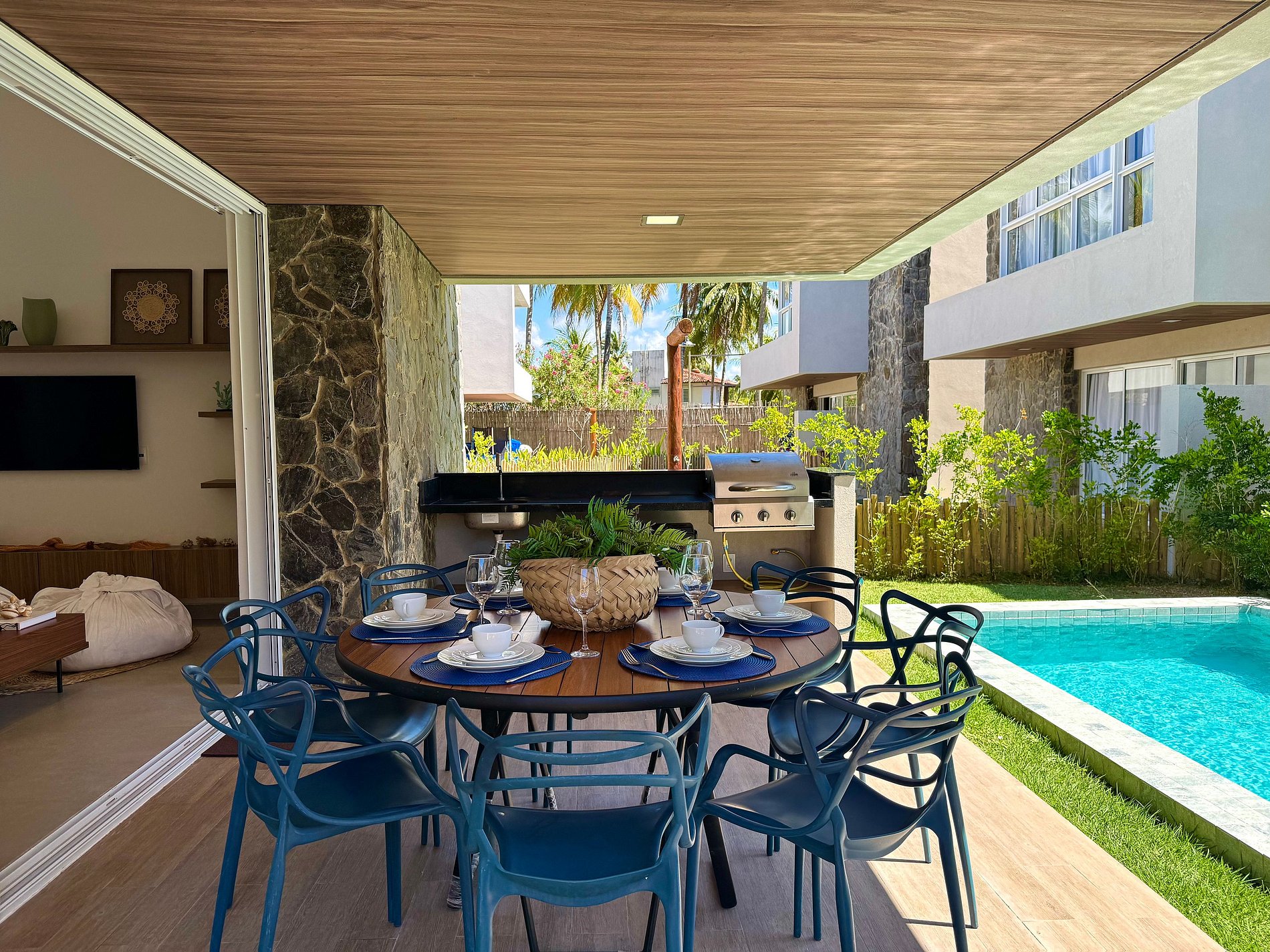 A casa tem sala de Tv Smart com wifi de alta velocidade. Casa com vista para o mar.