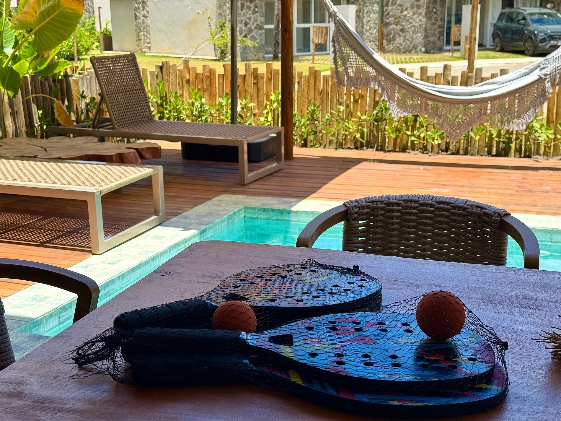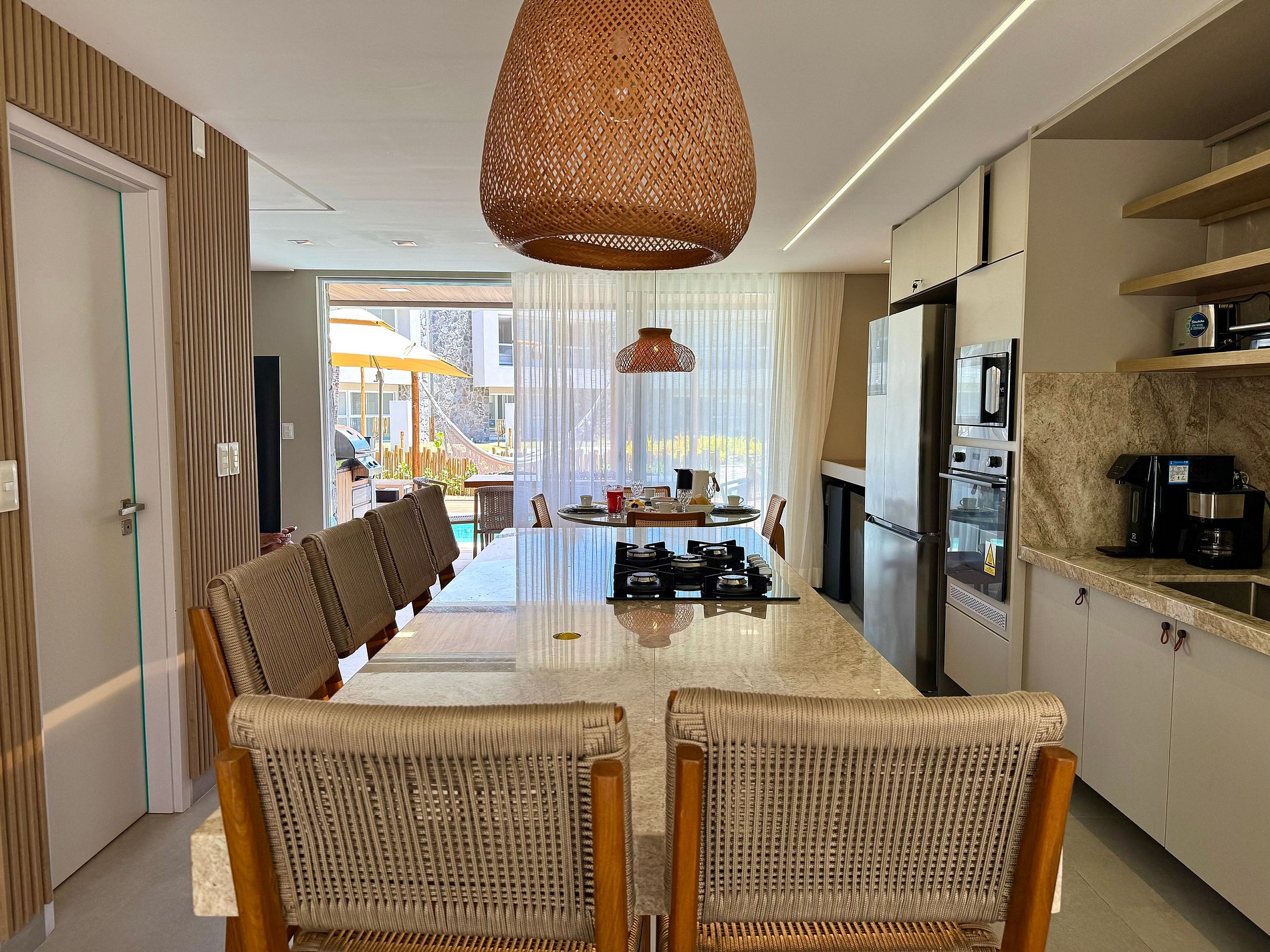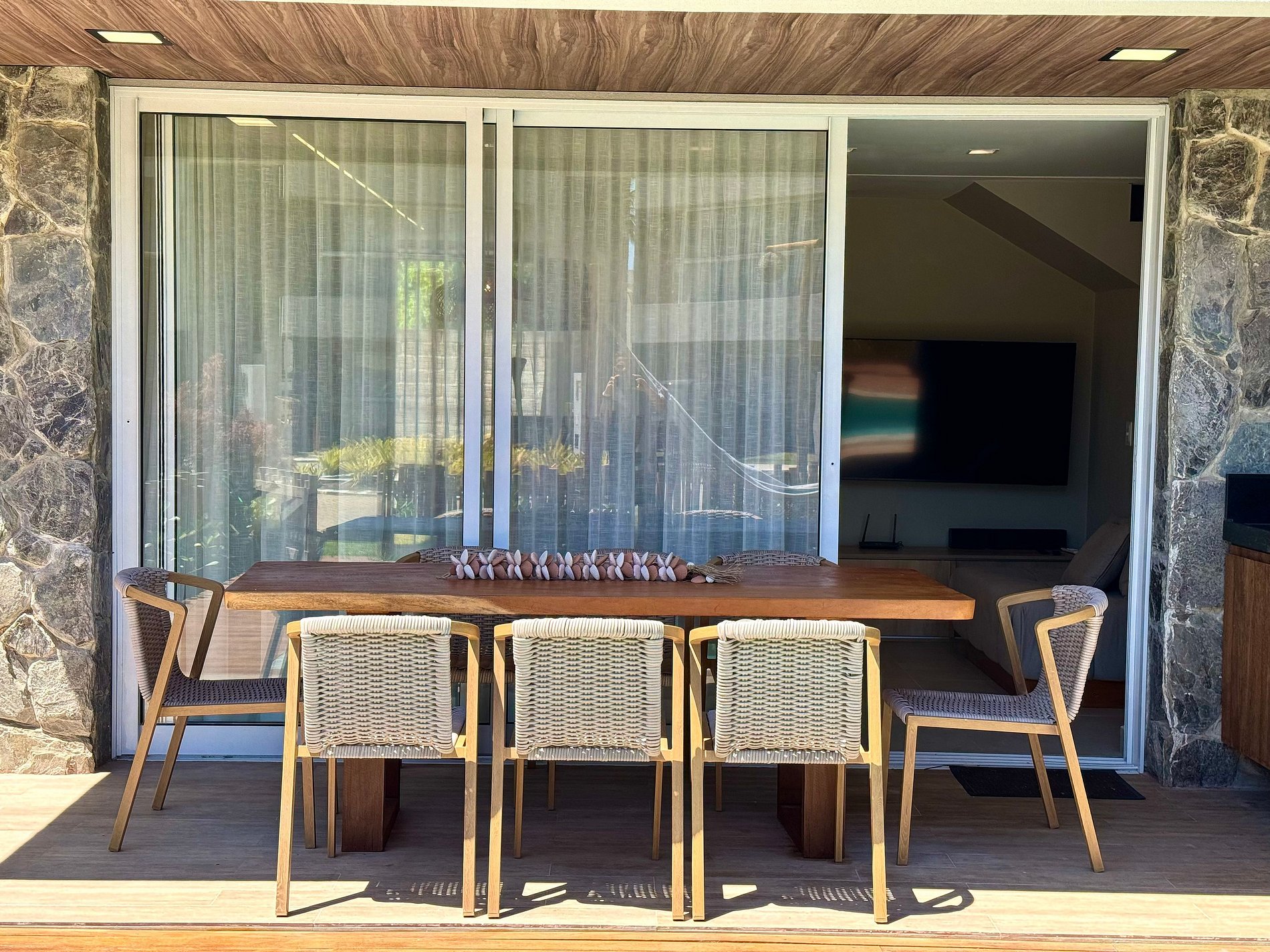A casa tem sala de Tv Smart com wifi de alta velocidade. Casa com vista para o beach club