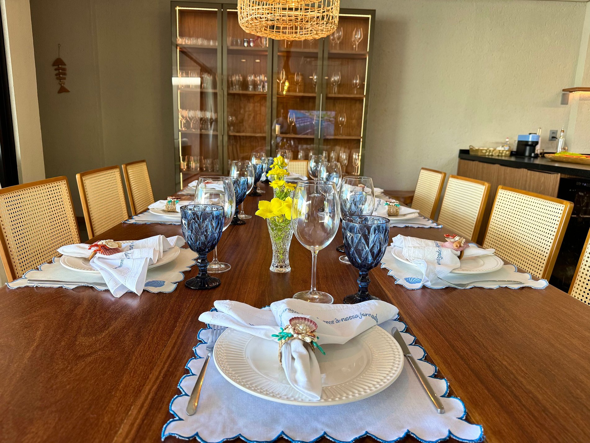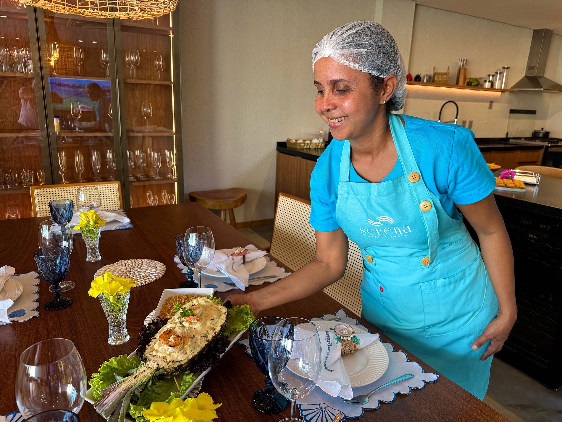 A Casa Serena tem um cardápio delicioso para atender você, sua família e seus amigos. Assim que a sua reserva for confirmada, enviaremos o cardápio para que possa escolher os pratos que desejar. Nosso concierge fará todas as compras, e você só precisará nos reembolsar depois — sem se preocupar com nada.