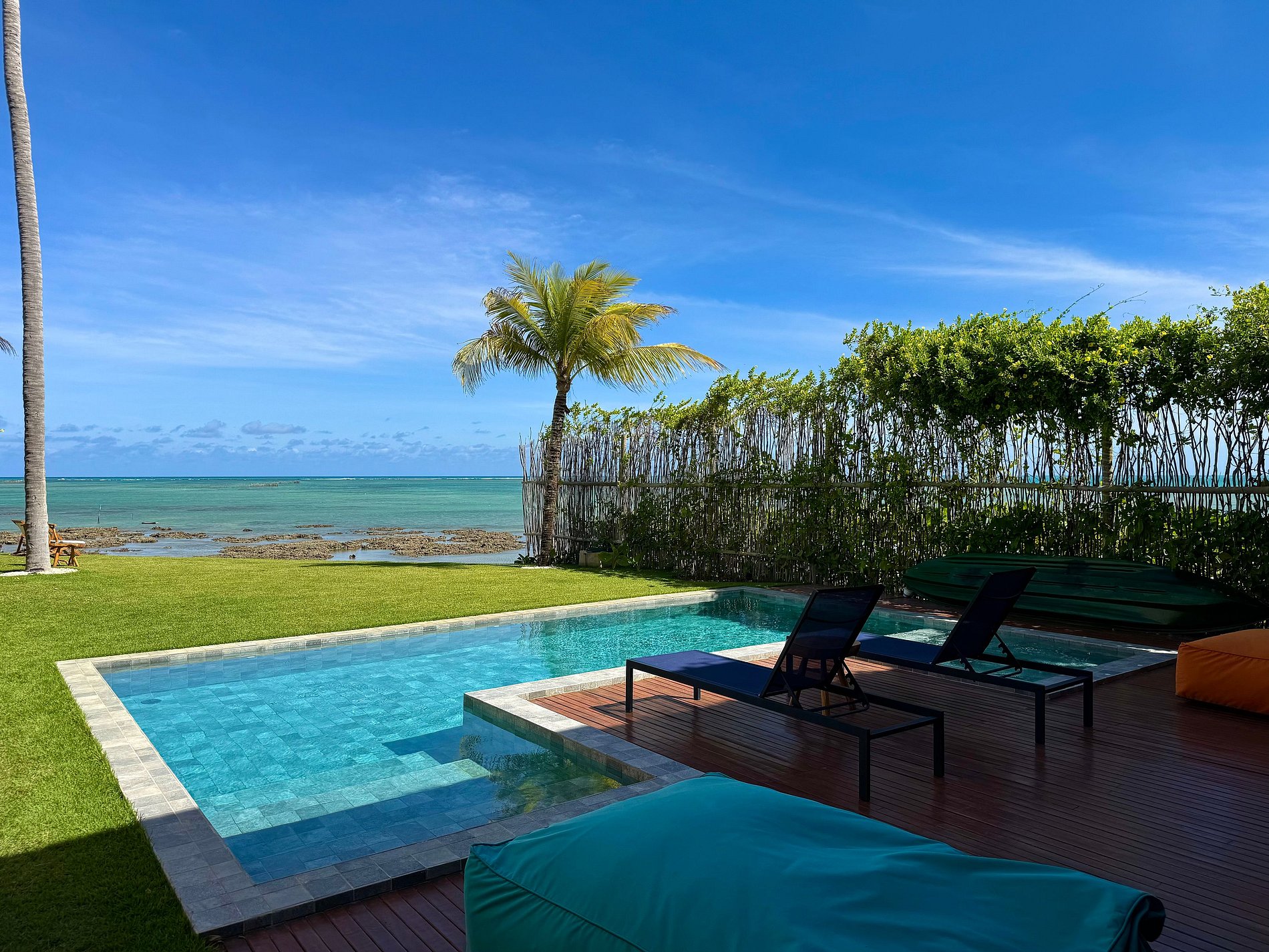 - Piscina privativa com jacuzzi e jardim exclusivo: Perfeito para momentos relaxantes com a família ou amigos, com vista deslumbrante para o mar.